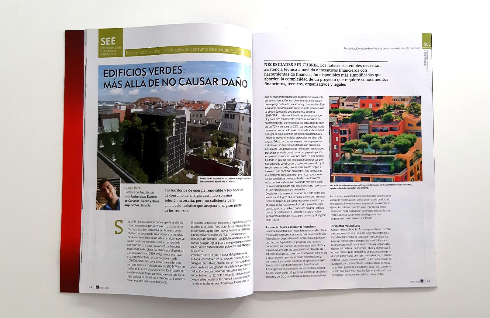 El pasado abril de 2019 escribimos en el número 553 de la revista de tirada nacional CIC (Centro Informativo de la Construcción) un artículo sobre rehabilitación sostenible y hoteles de consumo de energía casi nulo.