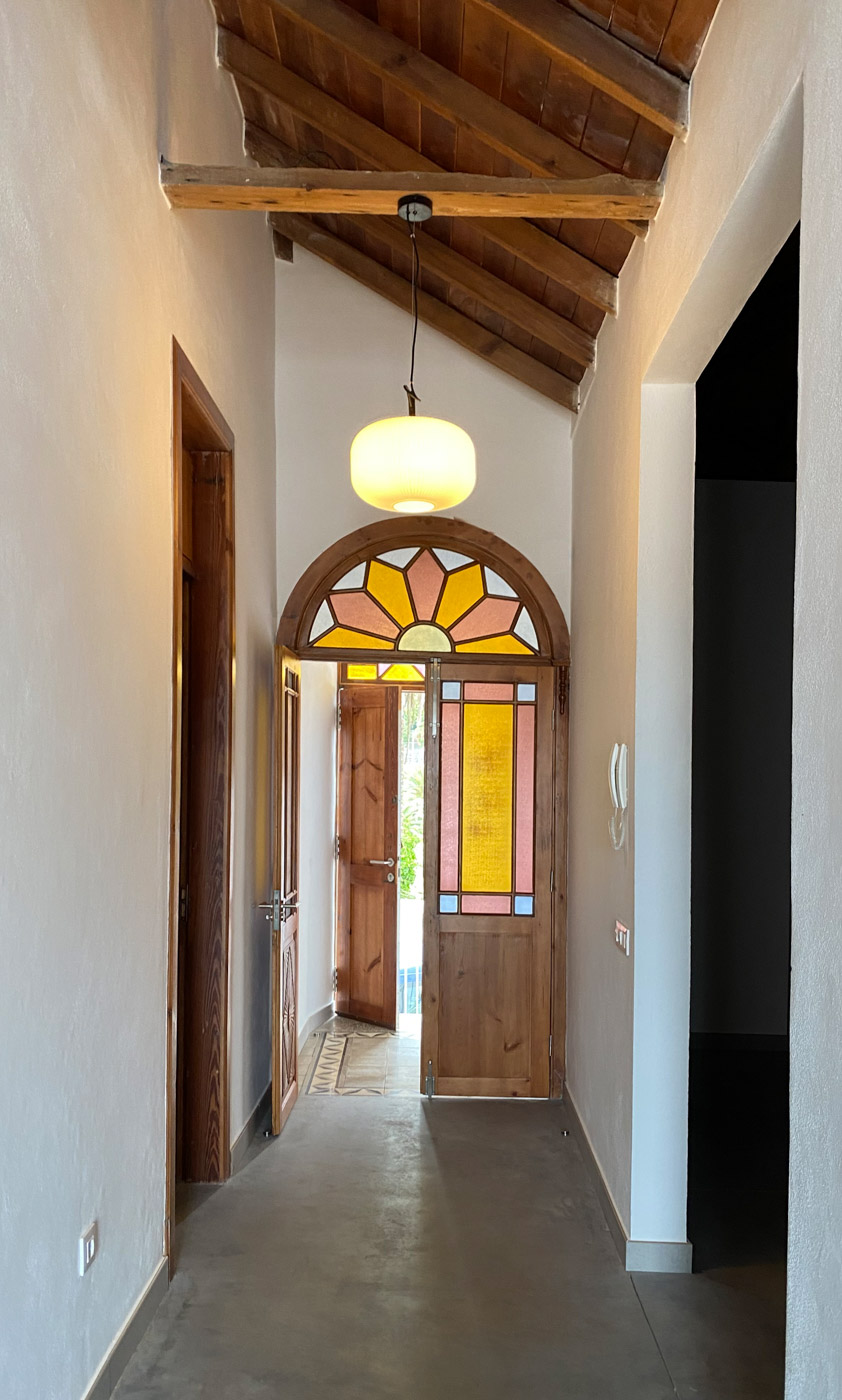 Esta casa en Tacoronte respira sostenibilidad en los elementos arquitectónicos. Originalmente, la casa de cromatismos sobrios y austeros, presentaba símbolos muy característicos de gran belleza y singularidad: las carpinterías, los pavimentos de baldosa hidráulicas, sus muebles de madera, las tejas, el vallado, entre otros. El delicado trabajo de restauración junto a profesionales locales nos permitió reutilizar y reubicar los diferentes elementos mimetizados con acabados más contemporáneos de tonos muy naturales y propios de la arquitectura canaria.