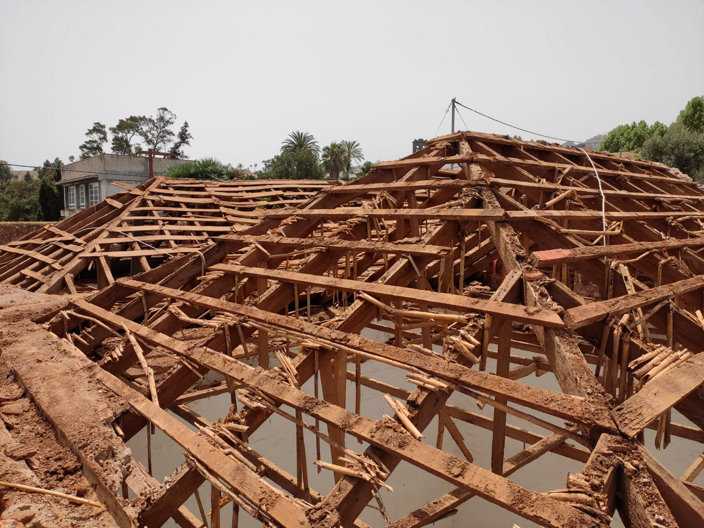 Por otro lado, la cubierta compuesta por tea de pino canario de tono rojizo fue reconstruida por un carpintero local de la isla con el sistema tradicional reutilizando elementos originales y materiales de cercanía.