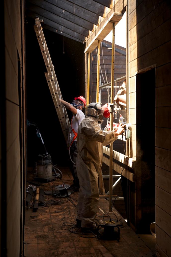 Fue necesario el refuerzo de la estructura para recuperar su capacidad de resistencia debido a la disminución de la sección causada por el incendio. Se trató cada detalle con dedicación, rigor y emoción. Se utilizaron pinturas y barnices no contaminantes para el usuario.